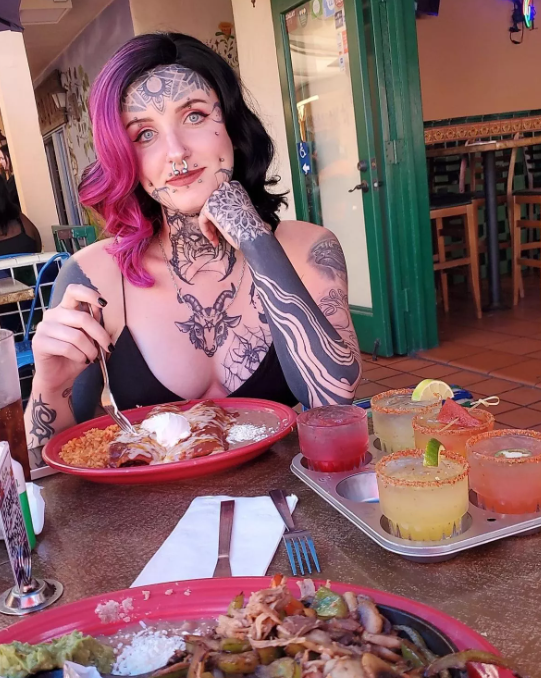 Today, her body art includes significant tattoos on her face and neck, which she feels represent her individuality and creativity. However, these tattoos seem to have come at a professional cost.