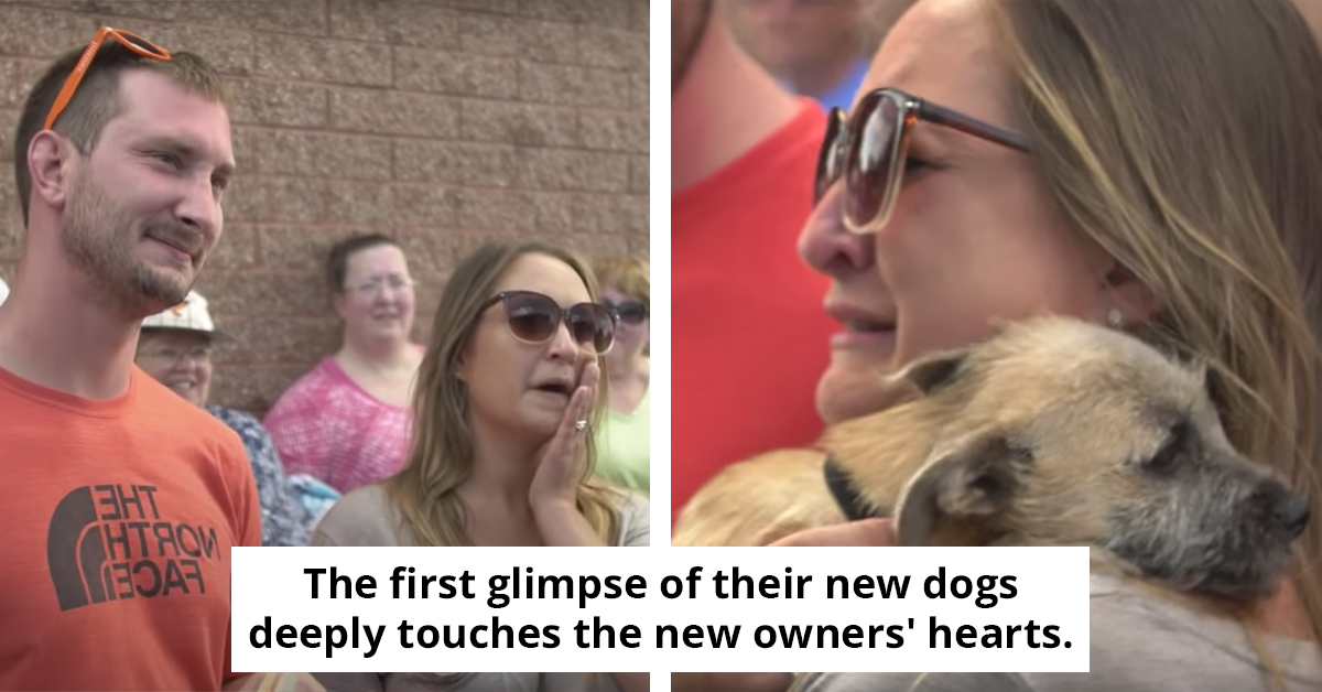 The first glimpse of their new dogs deeply touches the new owners' hearts.